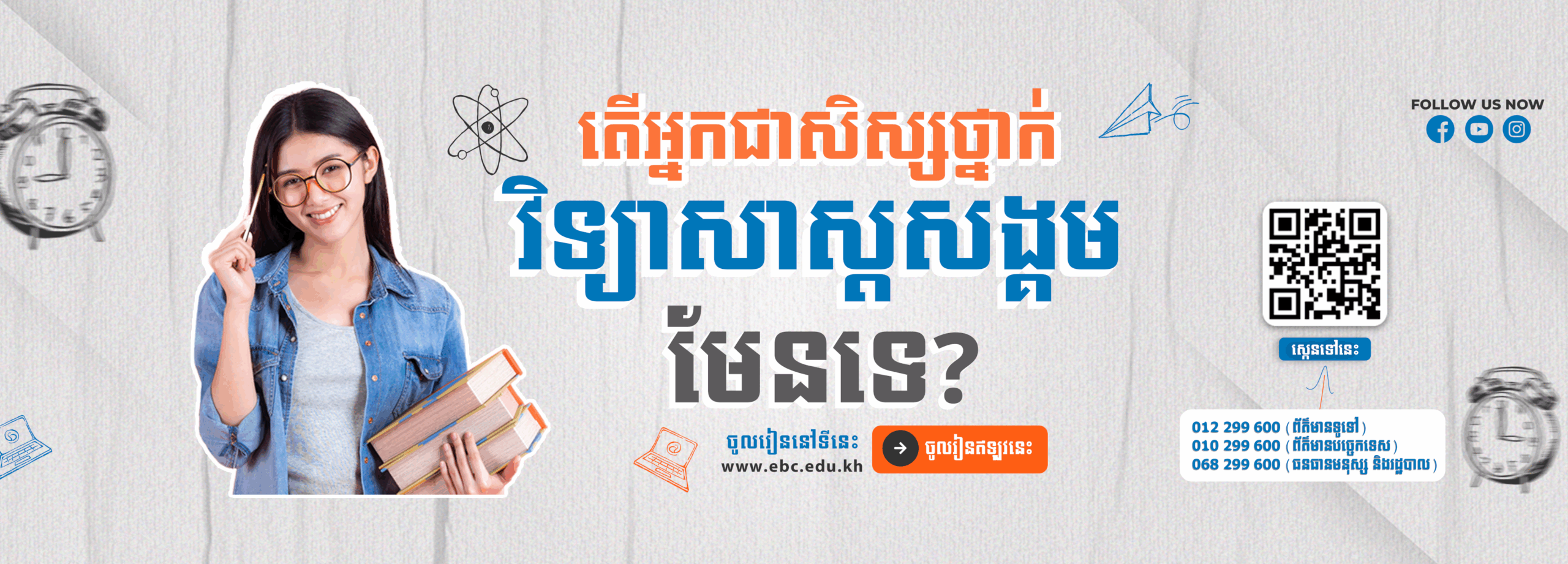 ភាសាអង់គ្លេស ថ្នាក់ទី៧ ជំពូកទី២ មេរៀនទី៤៖ I study English! (ភាគ១) ebc-moderator6 121 ចំនួនមើល • 4 ខែកន្លងទៅ