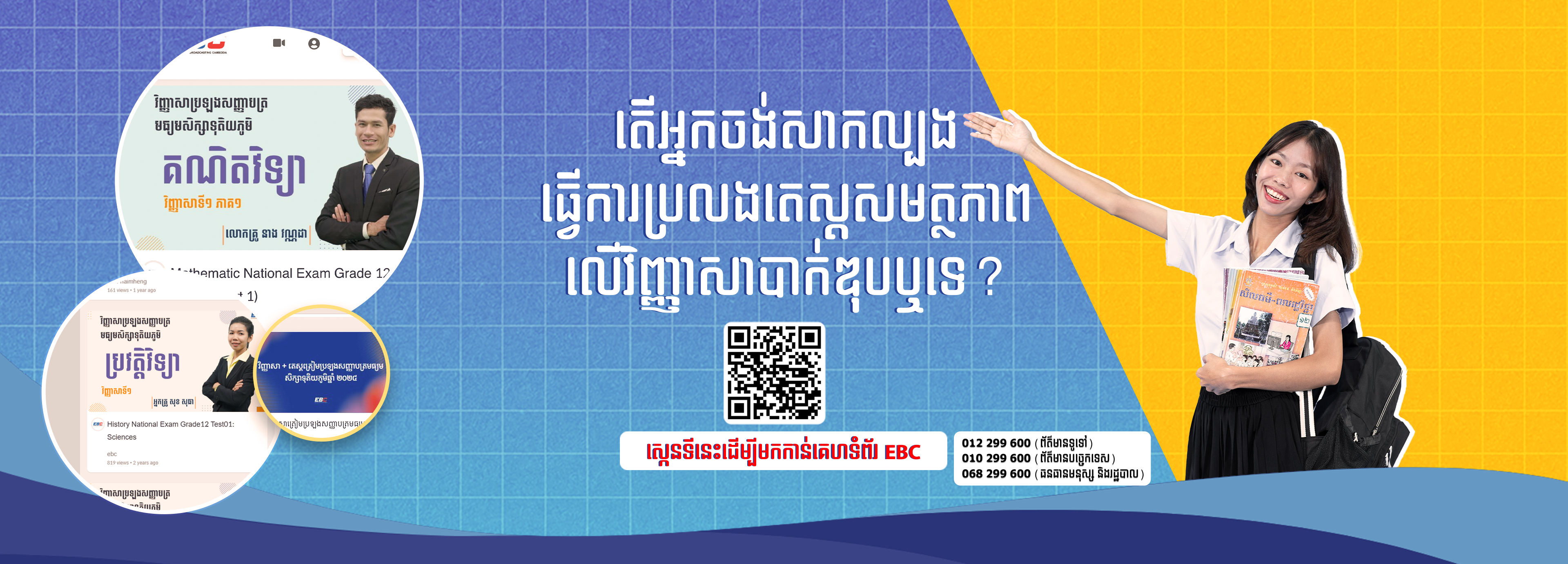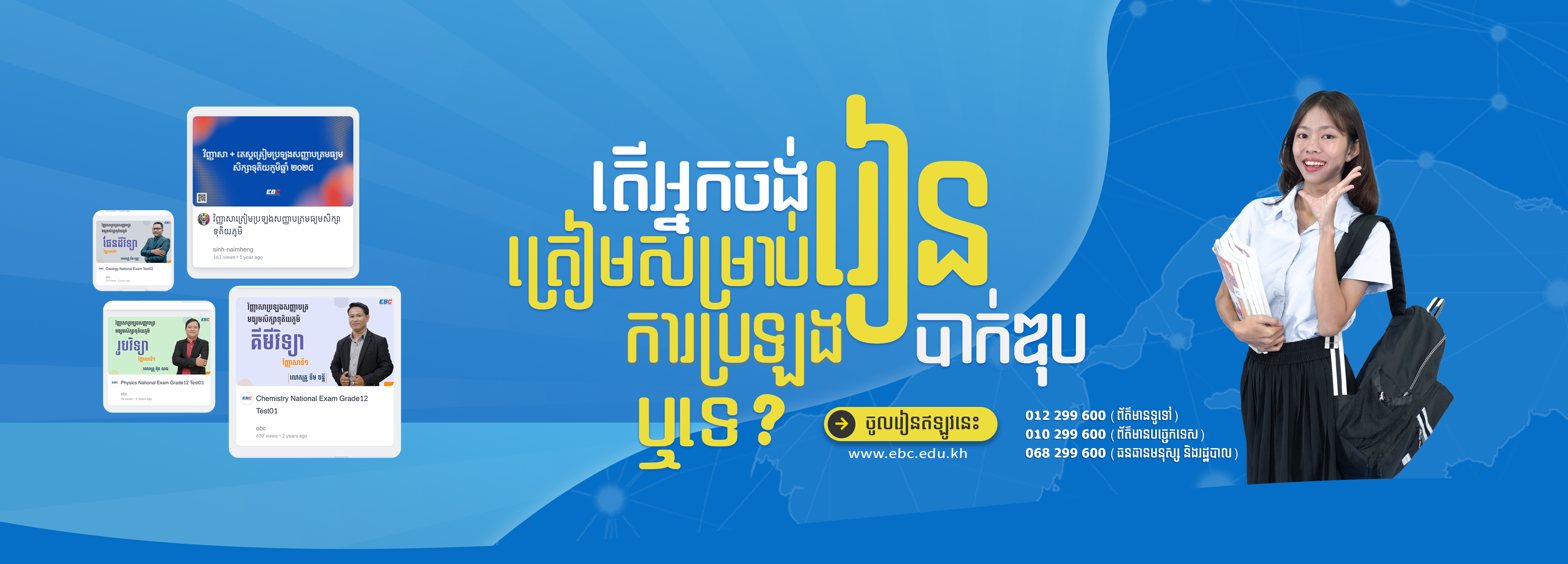 ភាសាអង់គ្លេស ថ្នាក់ទី៧ ជំពូកទី១ មេរៀនទី២៖ Schools Around The World (ភាគ១) ebc-moderator6 218 ចំនួនមើល • 4 ខែកន្លងទៅ
