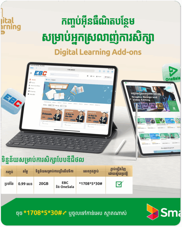 Educational Broadcasting Cambodia (EBC) is committed to making quality education accessible to all. Through strategic partnerships with Cambodia’s leading telecom operators — Smart Axiata, Cellcard, and Metfone — learners can access EBC’s educational content with little to no data cost.These collaborations allow students, teachers, and lifelong learners to study online without worrying about connectivity barriers. Each telecom provider offers different plans and conditions, giving users the flexibility to choose what works best for them.
